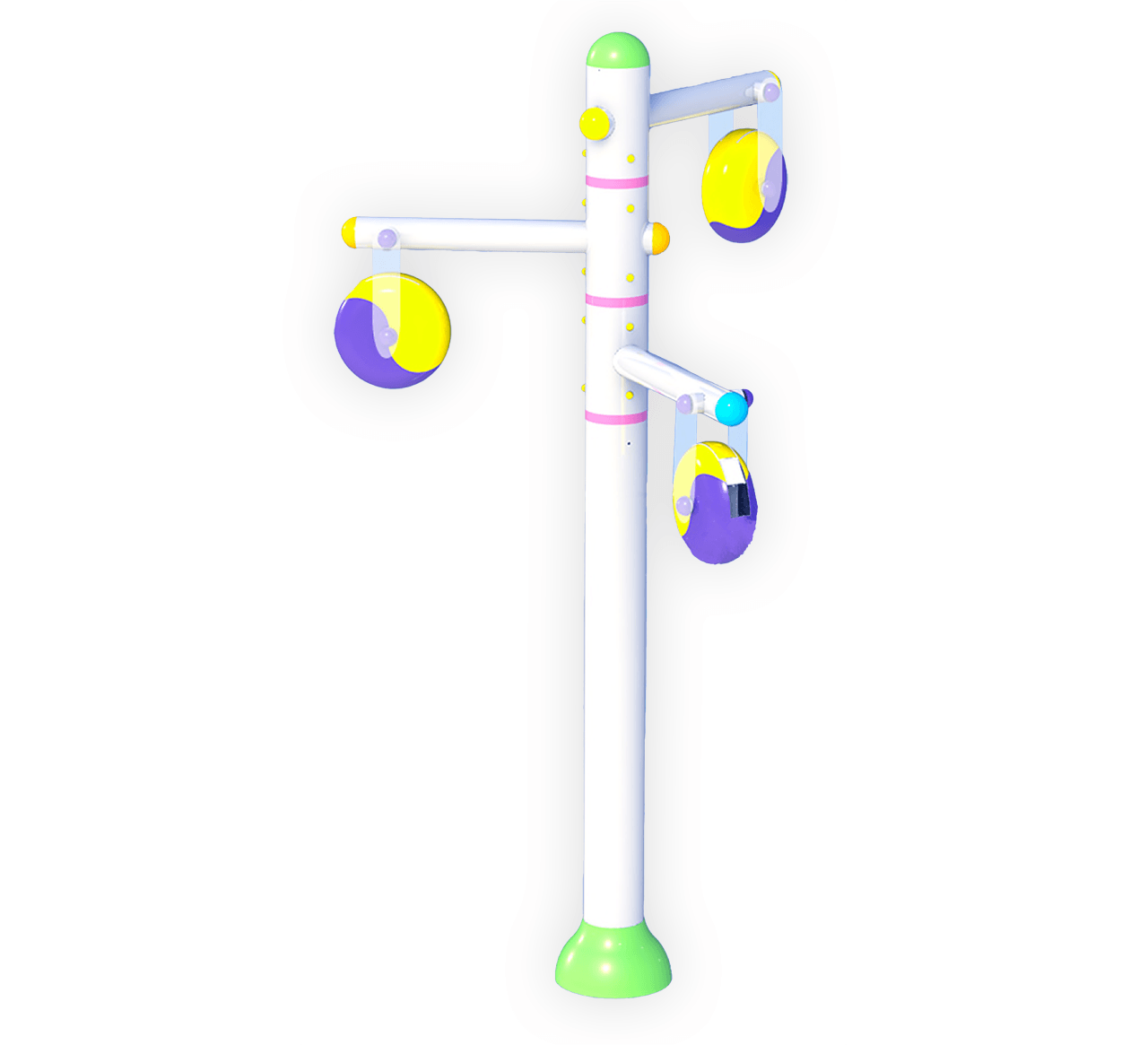 The Tippin’ Trio structure is an excellent focal center piece for an interactive water sculpture suitable for a spray park application with no standing water or in pools of varying depths. The unit contains three colorful tipping vessels decorated with a colorful yin-yang style. The unit can be utilized as a dynamic, high-level central focal piece, where children and adults both wait in anticipation as the vessels randomly fill and tip over with a big splash.