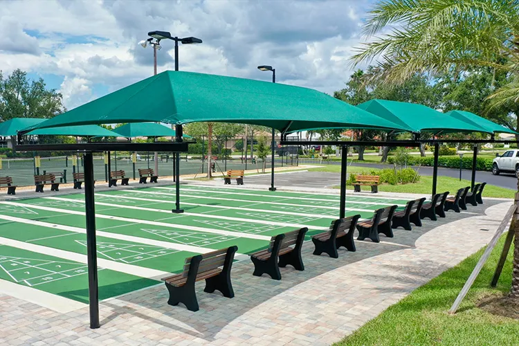 For larger public spaces, more permanent shade structures can provide broad coverage for seating areas, playgrounds, sports facilities, and gathering spaces. These systems are designed to deliver long-term comfort while enhancing the appearance and usability of outdoor areas.